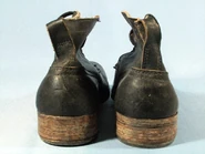 The cintarki are a standard low boot type shoes. They are made of leather and have six or five lace holes lacking eyelets and their most distinguishing feature is the loop on the rear part of the shoe that goes into the heel cap. The soles are made of stacked leather pieces with hobnails and the heels are reinforced with metal cleats.