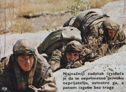 The Snajpersko odelo (literally; Sniper suit) was a camouflaged oversuit/coverall of Yugoslav origin. It was designed and issued specifically for YPA scouts and snipers in the first place as well as for paratroopers and was thus, used exclusively by them. Although its pattern was an original design, the sole suit was actually based on and heavily influenced by World War II era Red Army Ameba kostjum (Amoeba costume) two-tone camouflage sniper suit (whose spots of irregular shape were somewhat resembling an Amoeba, which is reason why it was named as such). Despite the fact that sole suit as well as its camouflage pattern actually never had any kind of official designation given by YPA (in contrast to most other equipment of theirs, which was always marked with usual Model-year designation), the pattern is nowadays often commonly referred simply as Planinski uzorak (Mountain pattern), which is, however, exclusively a colloquial (unofficial) designation given today by various collectors. YPA personnel simply called it Snajpersko odelo or Snajperski kombinezon (Sniper suit/coverall) and they did not have any specific naming for its sole pattern.
